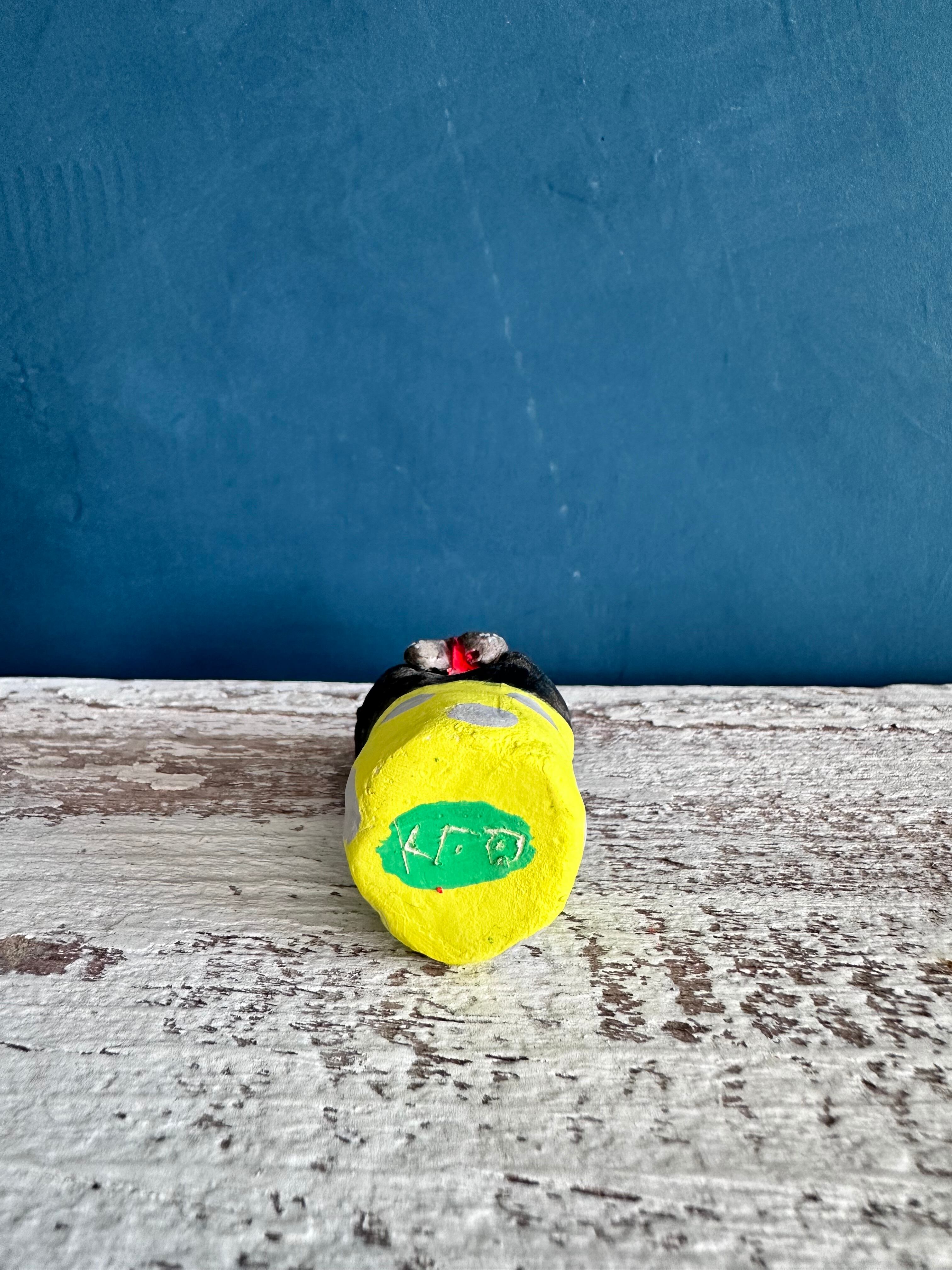 コロンとカラフルな小さな小さなオブジェです。手作りならではの温かみと個性が光る一品。石粉粘土で形を作り、その上にアクリル絵の具で着色。手作り感がたまらない思わず集めたくなるオブジェです。