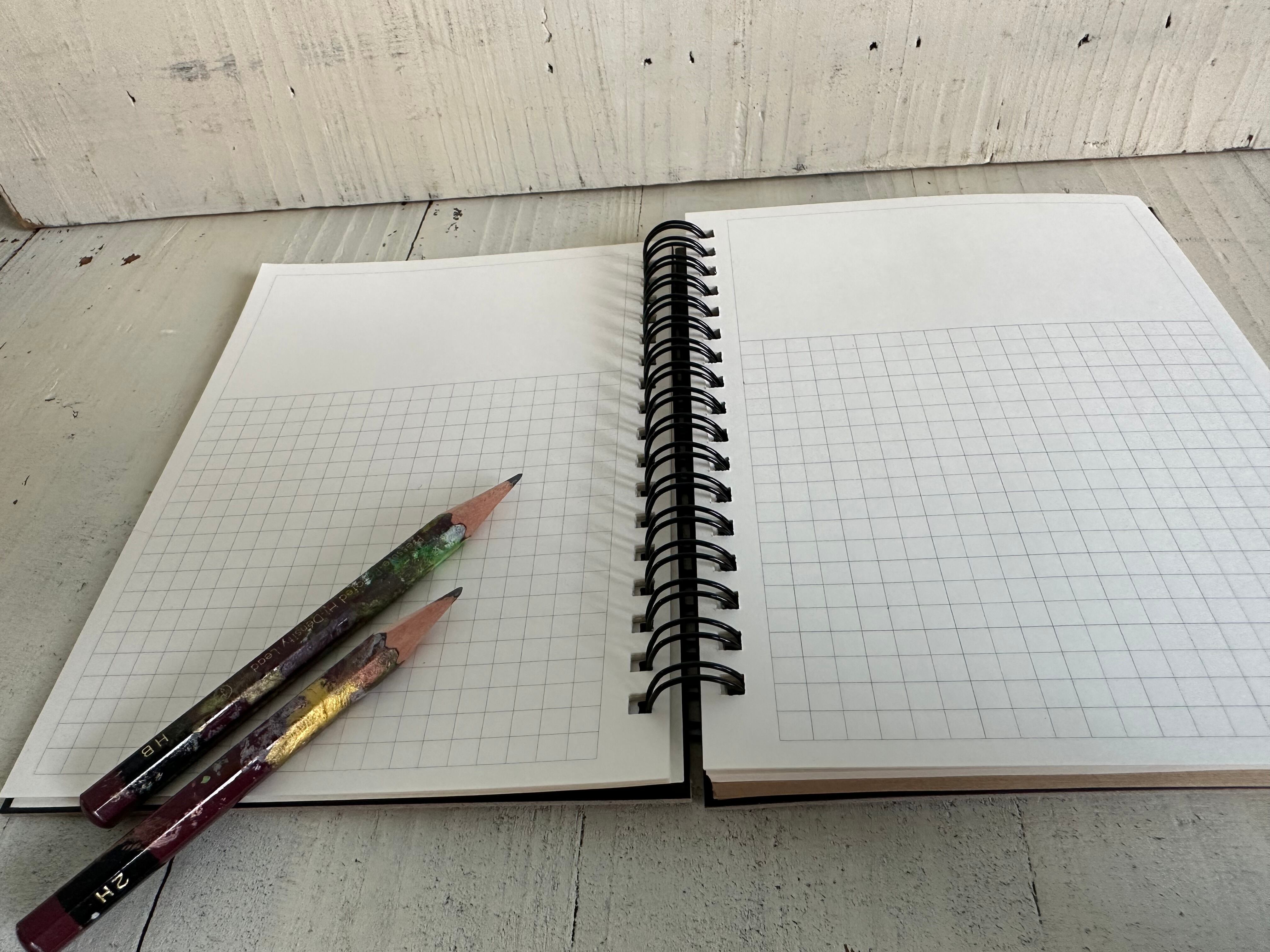 中身は方眼40枚程度、クラフト40枚程度の紙が入ったリングノート。