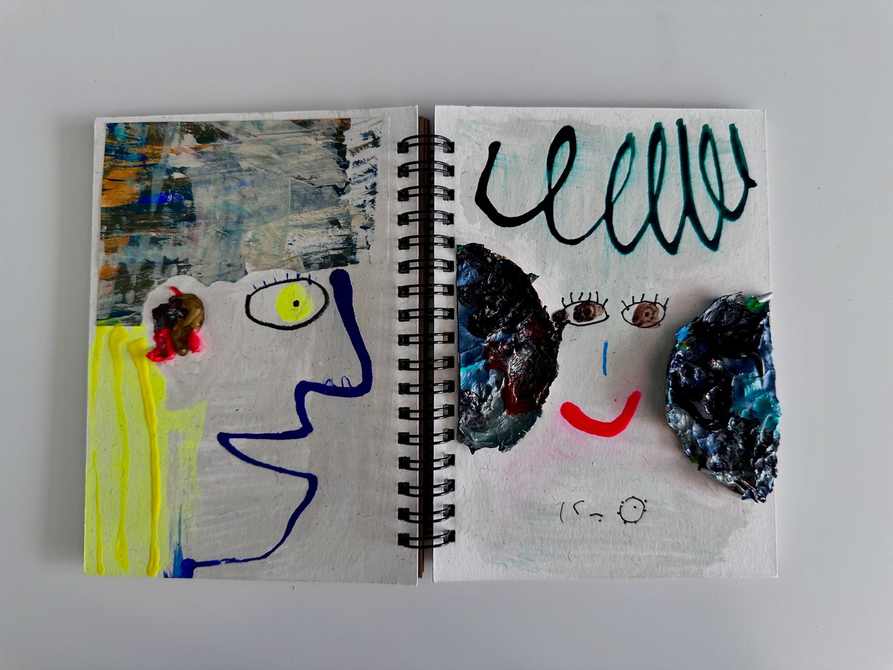 実験、ウォーミングアップ、お遊び、、、、、etc.力を抜いてストレスフリーで表紙と裏表紙にコラージュ、ドローイング、ペイントなど気の赴くまま制作しているノートたち。