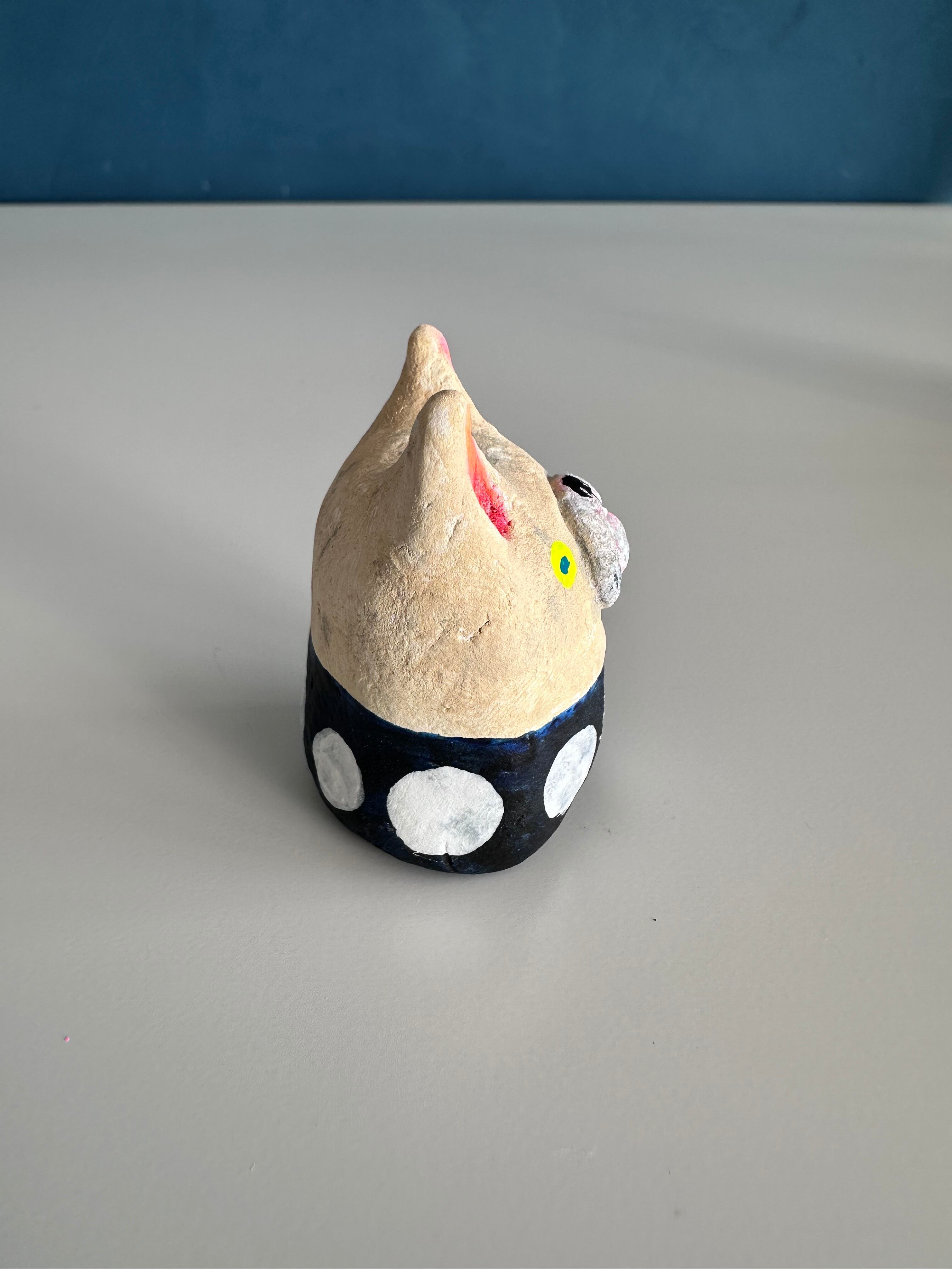 コロンとカラフルな小さな小さなオブジェです。手作りならではの温かみと個性が光る一品。石粉粘土で形を作り、その上にアクリル絵の具で着色。手作り感がたまらない思わず集めたくなるオブジェです。