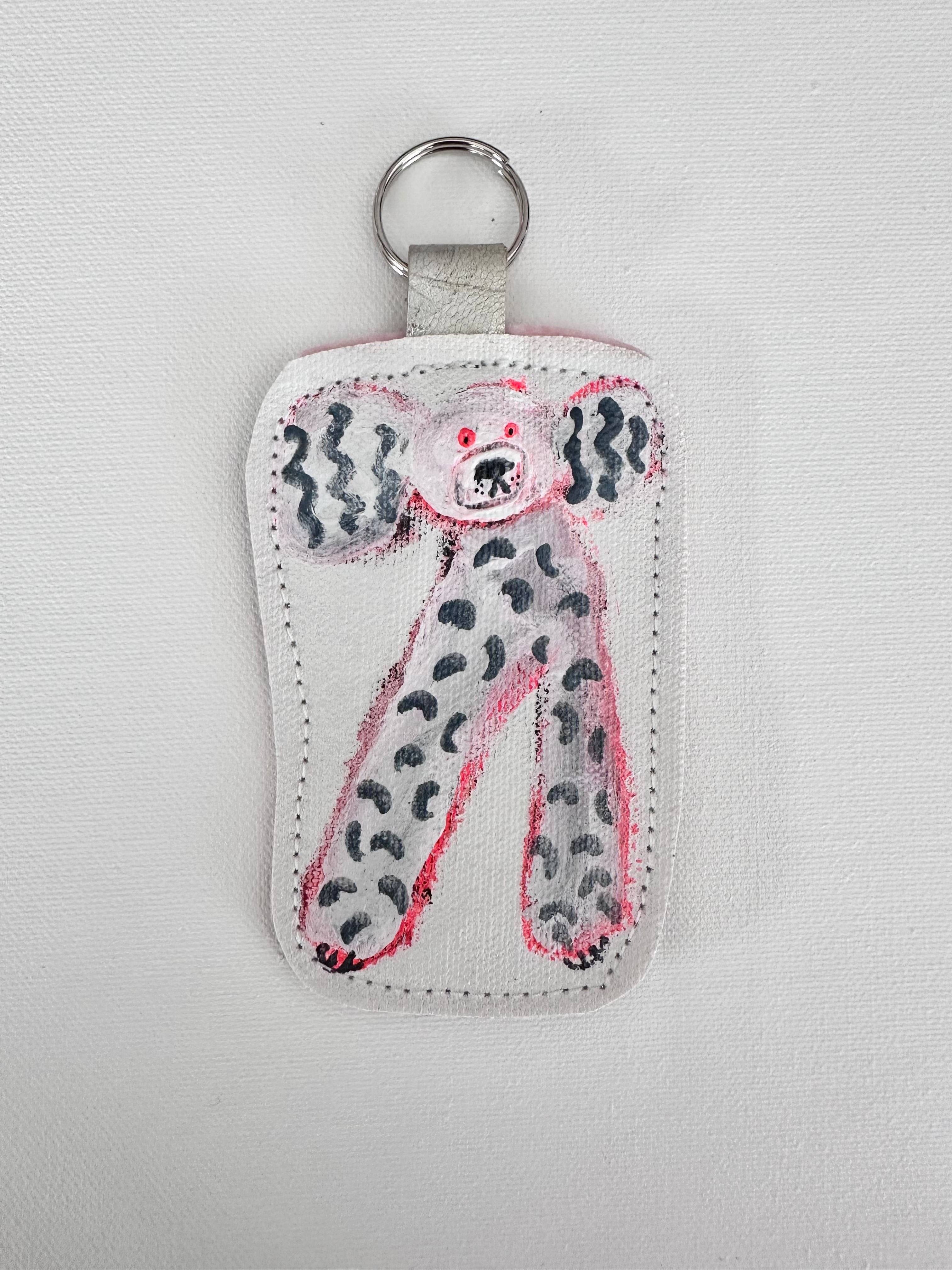 canvasの端材ができると制作するのが小さな小さな日用絵画雑貨たち。こちらはcanvas端材と革端材で作るキーホルダー。裏面は制作年月日入り