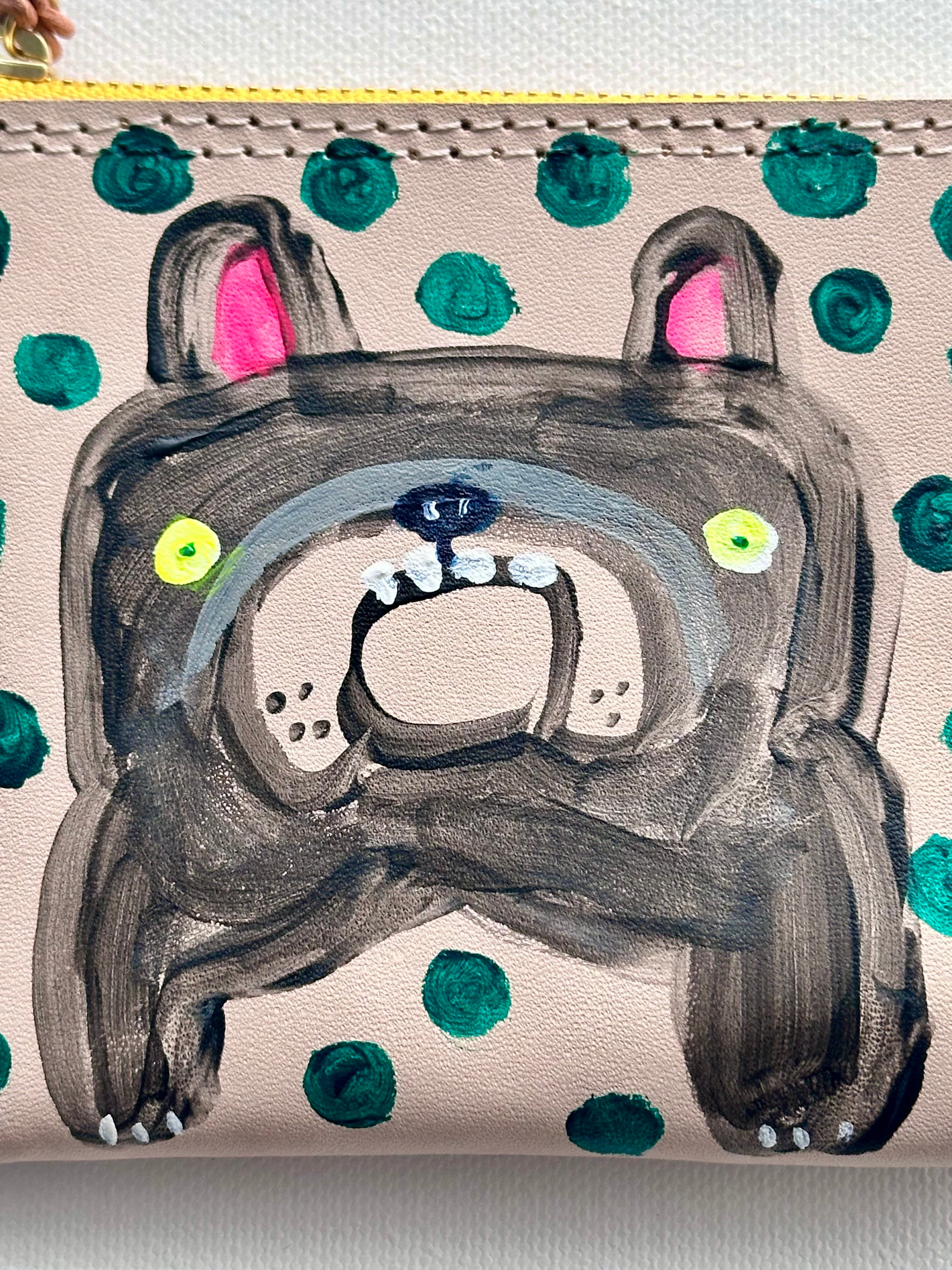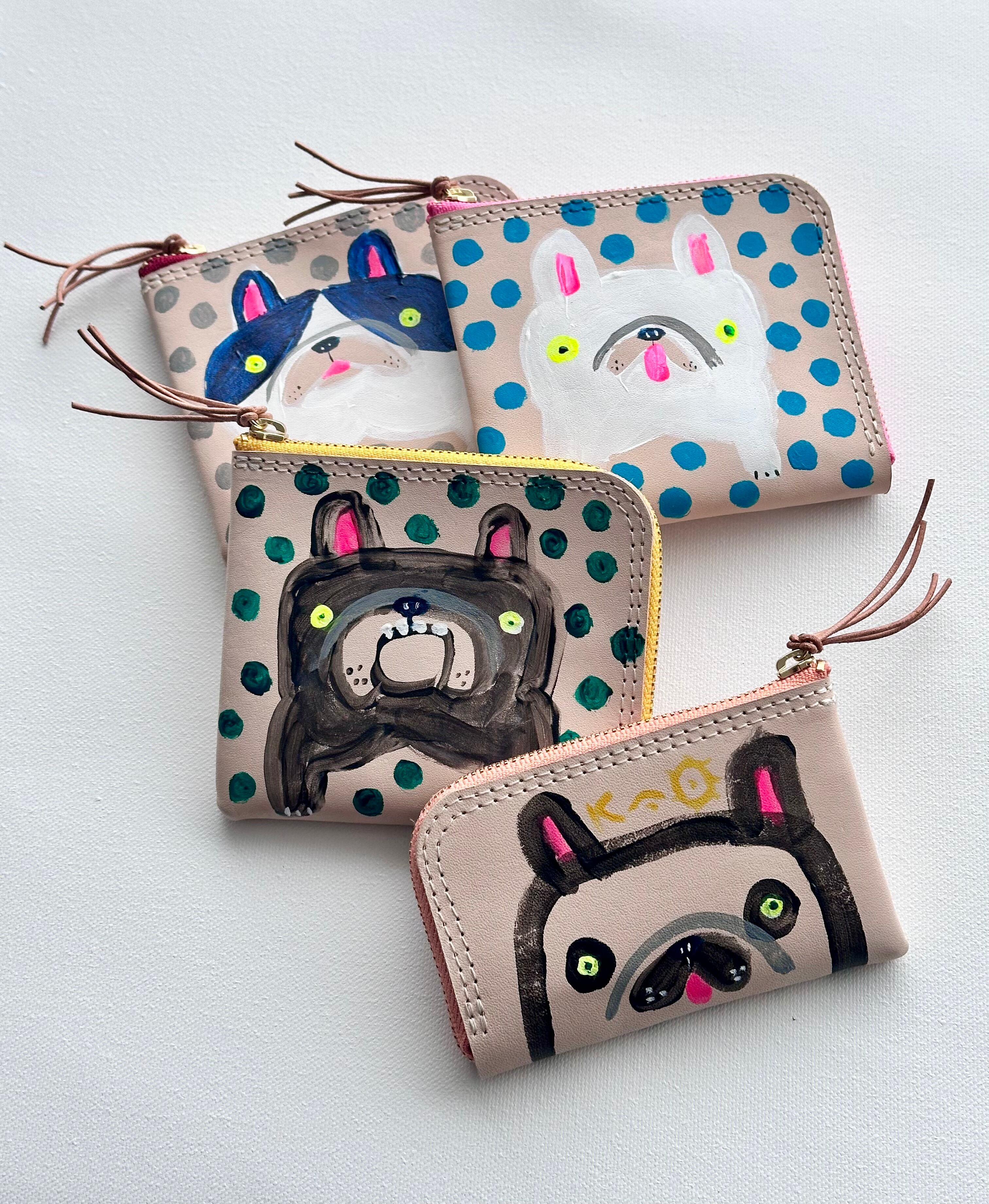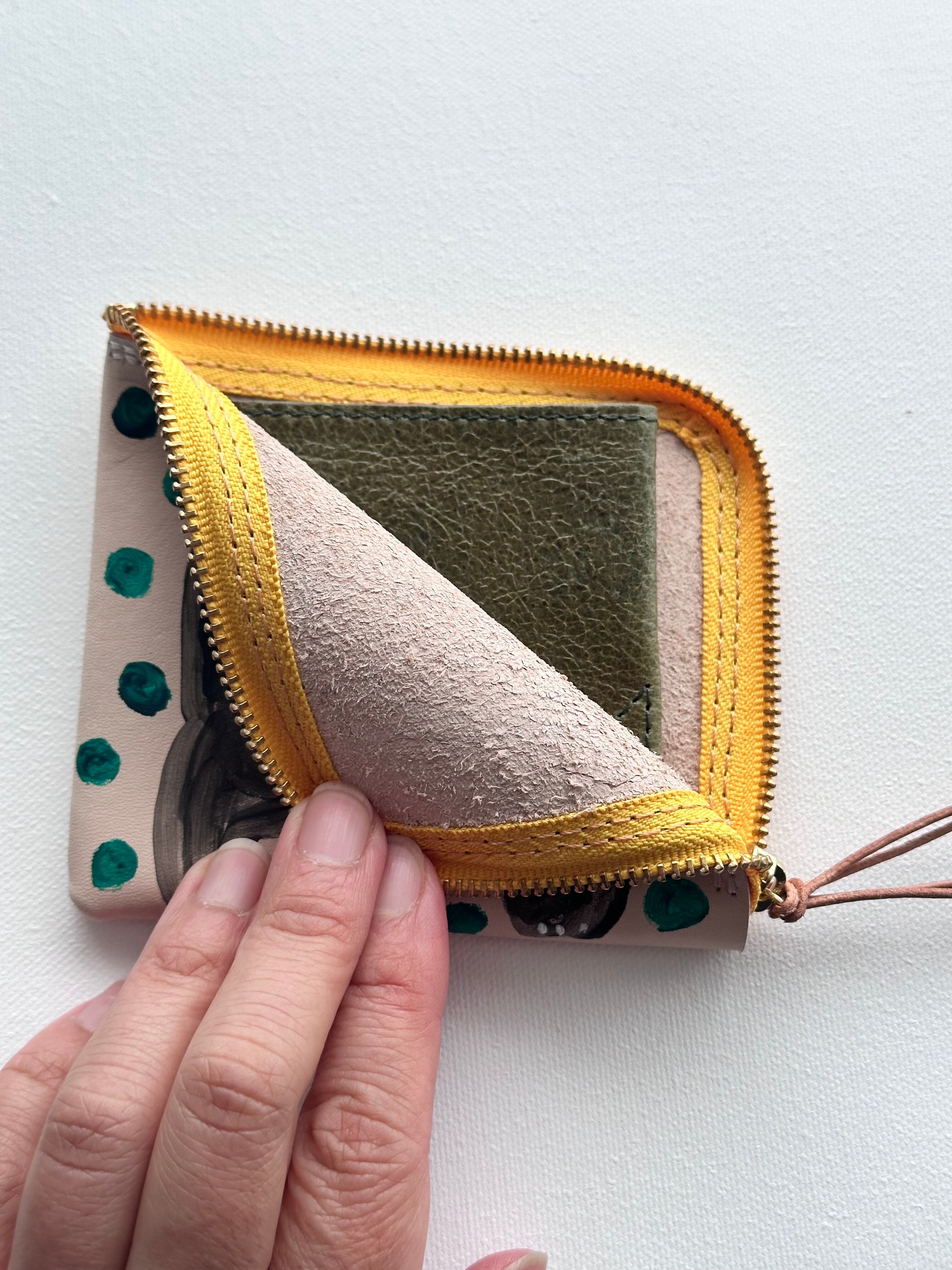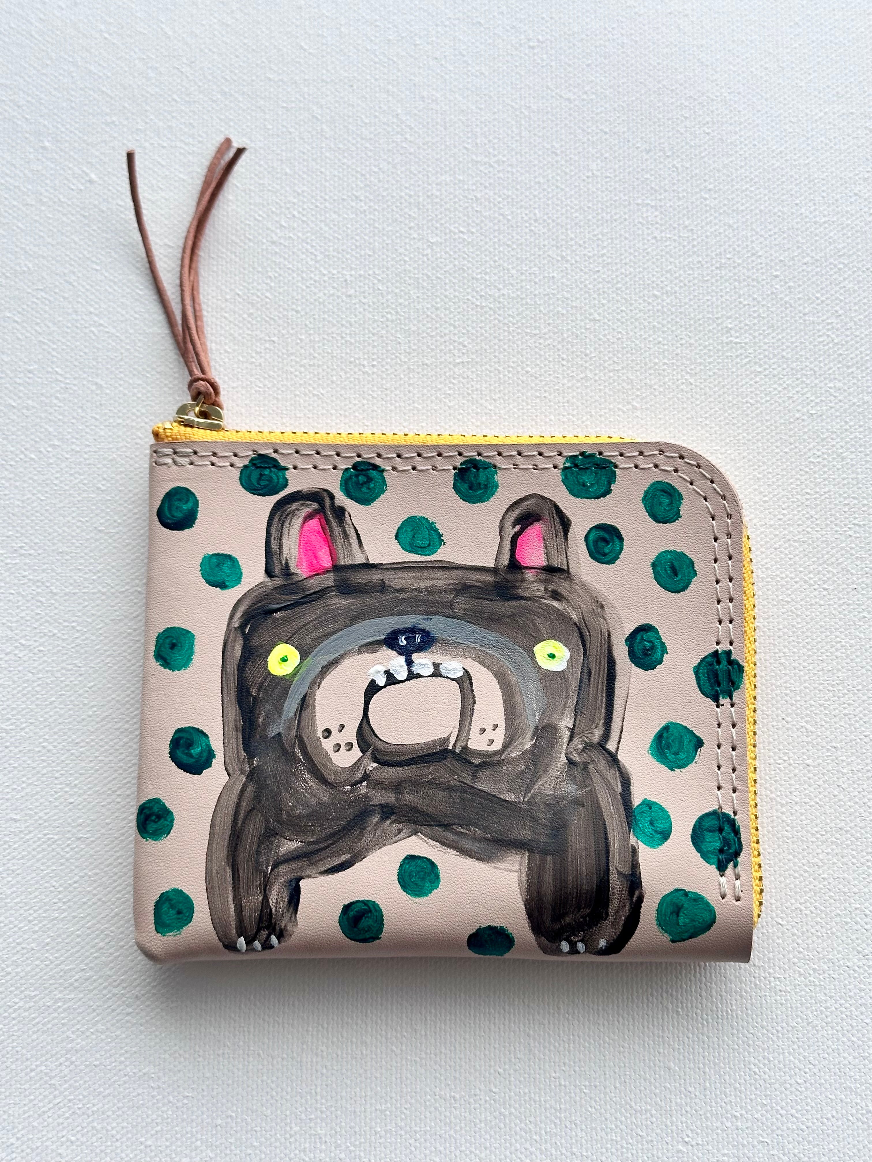 ヌメ牛革に手描きペイントしたコンパクトな二つ折り財布。