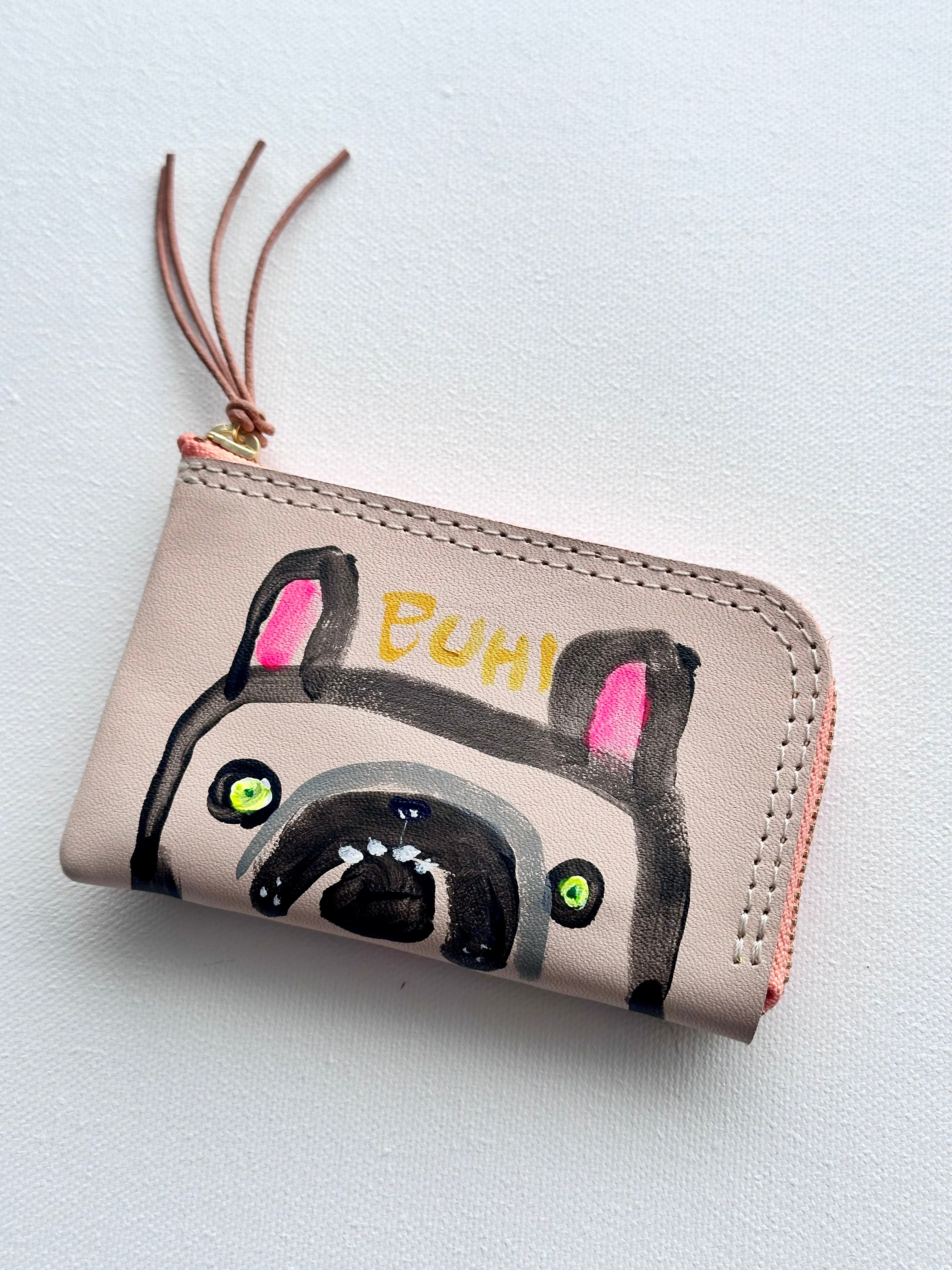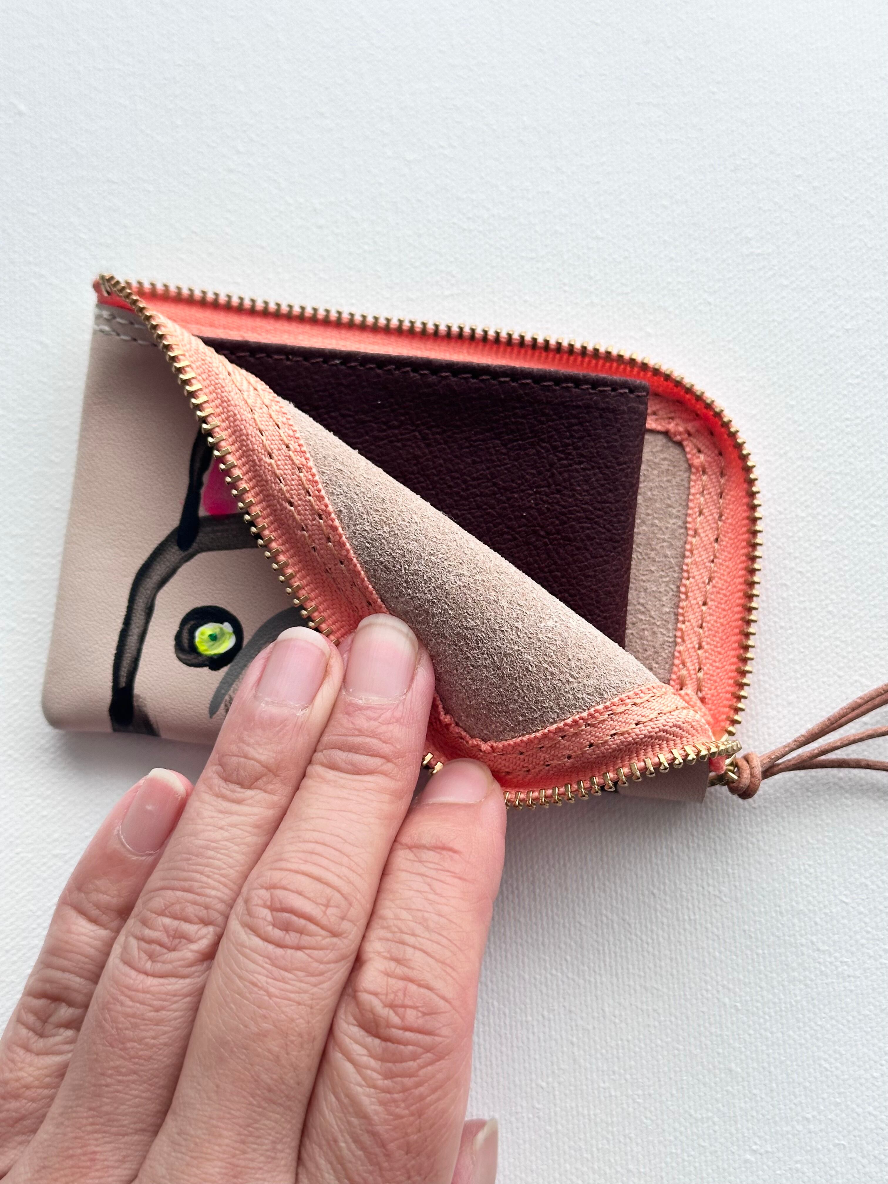 ヌメ牛革に手描きペイントしたコンパクトな財布としても使用できるカードケースです。