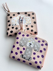ヌメ牛革に手描きペイントしたコンパクトな二つ折り財布。