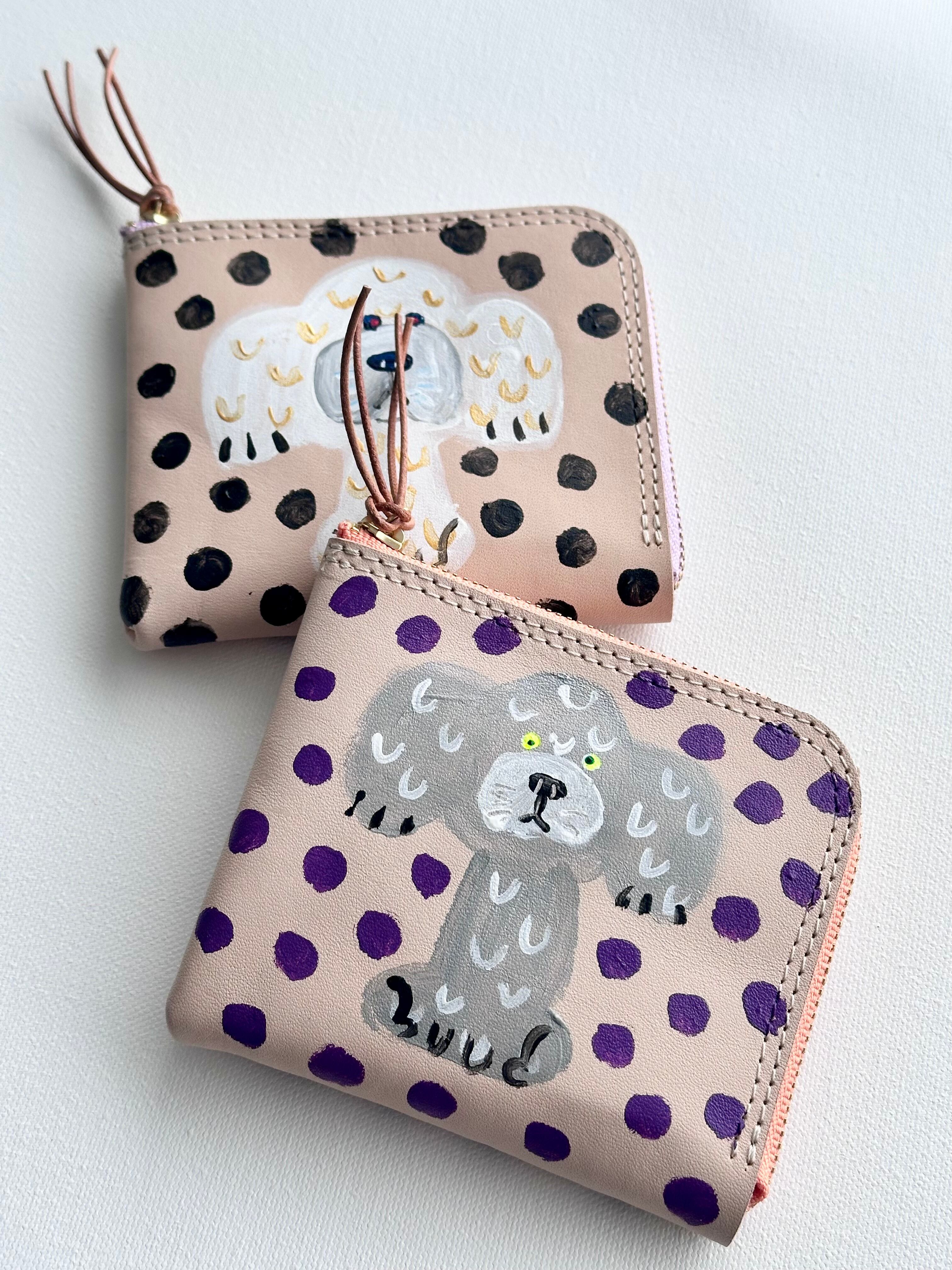二つ折りコンパクトペイント革財布(プードル・シルバー)