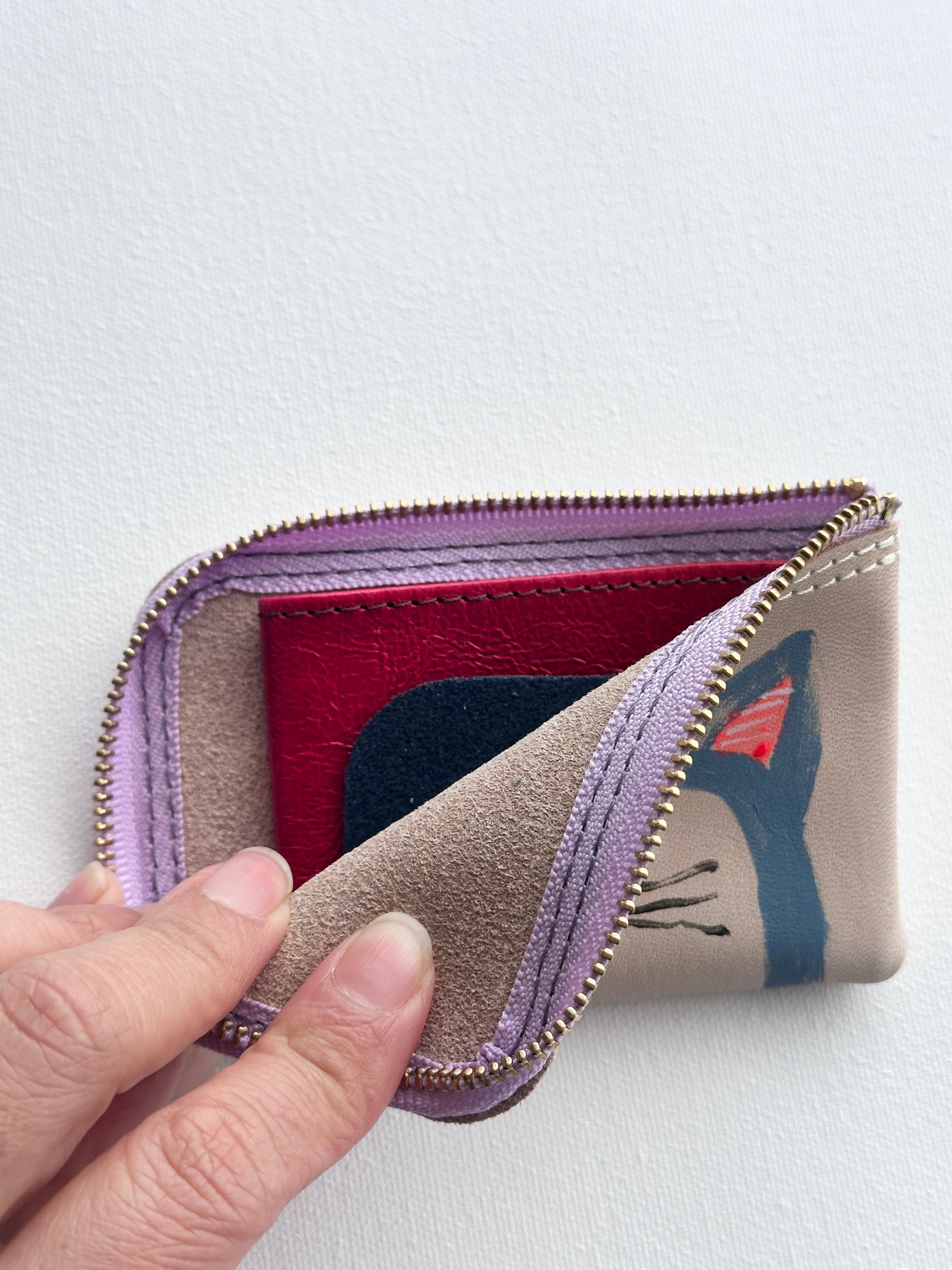 ヌメ牛革に手描きペイントしたコンパクトな財布としても使用できるカードケースです。