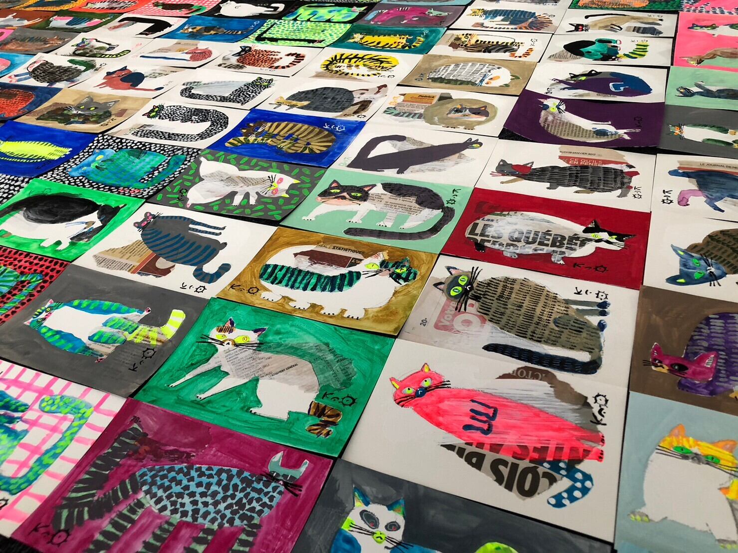 TT"で2022.11.10.thu.-24.thu.に開催した個展「ねこか」で展示したねこ100本ノックポストカードサイズ原画です。