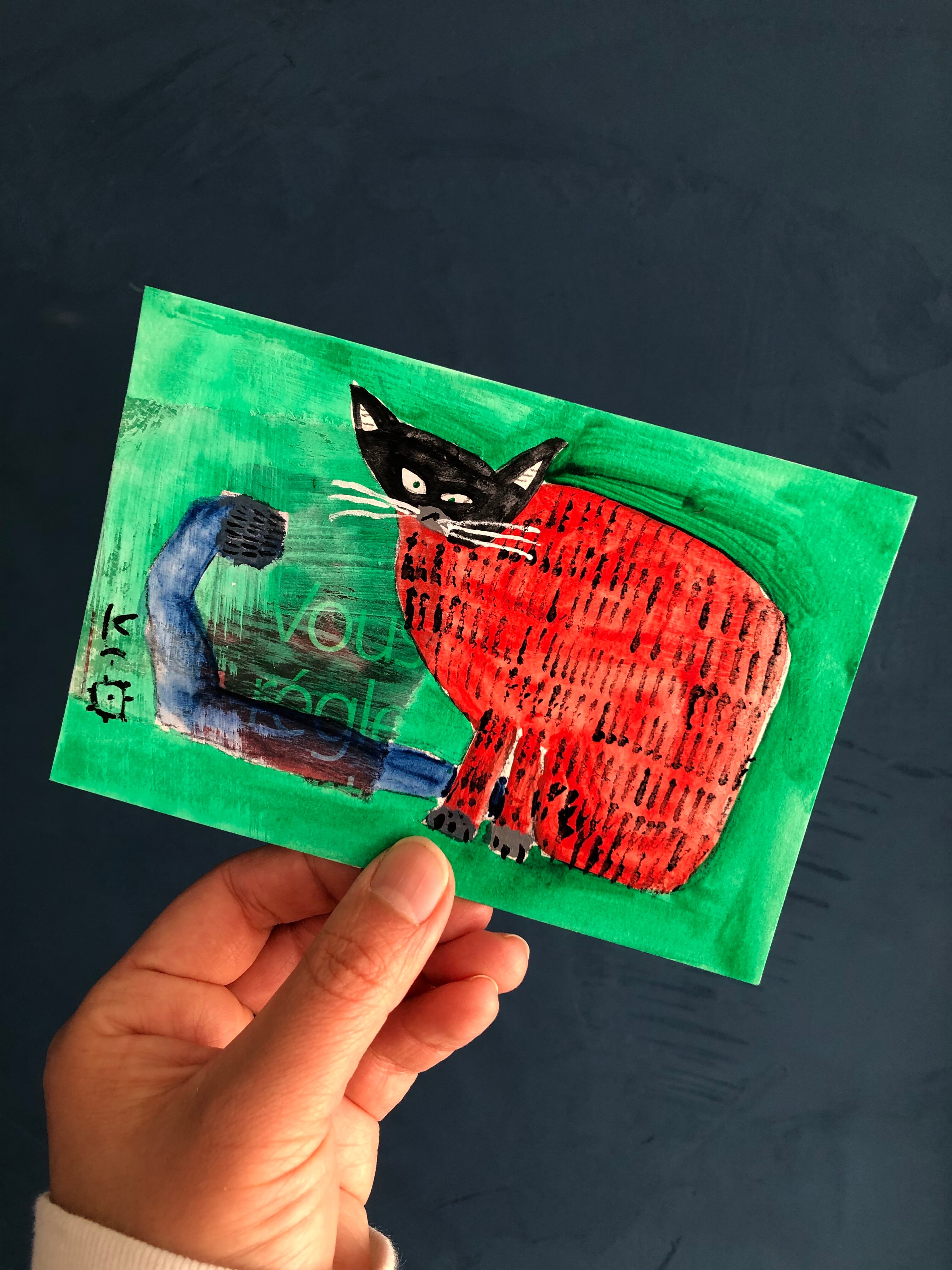 TT"で2022.11.10.thu.-24.thu.に開催した個展「ねこか」で展示したねこ100本ノックポストカードサイズ原画です。