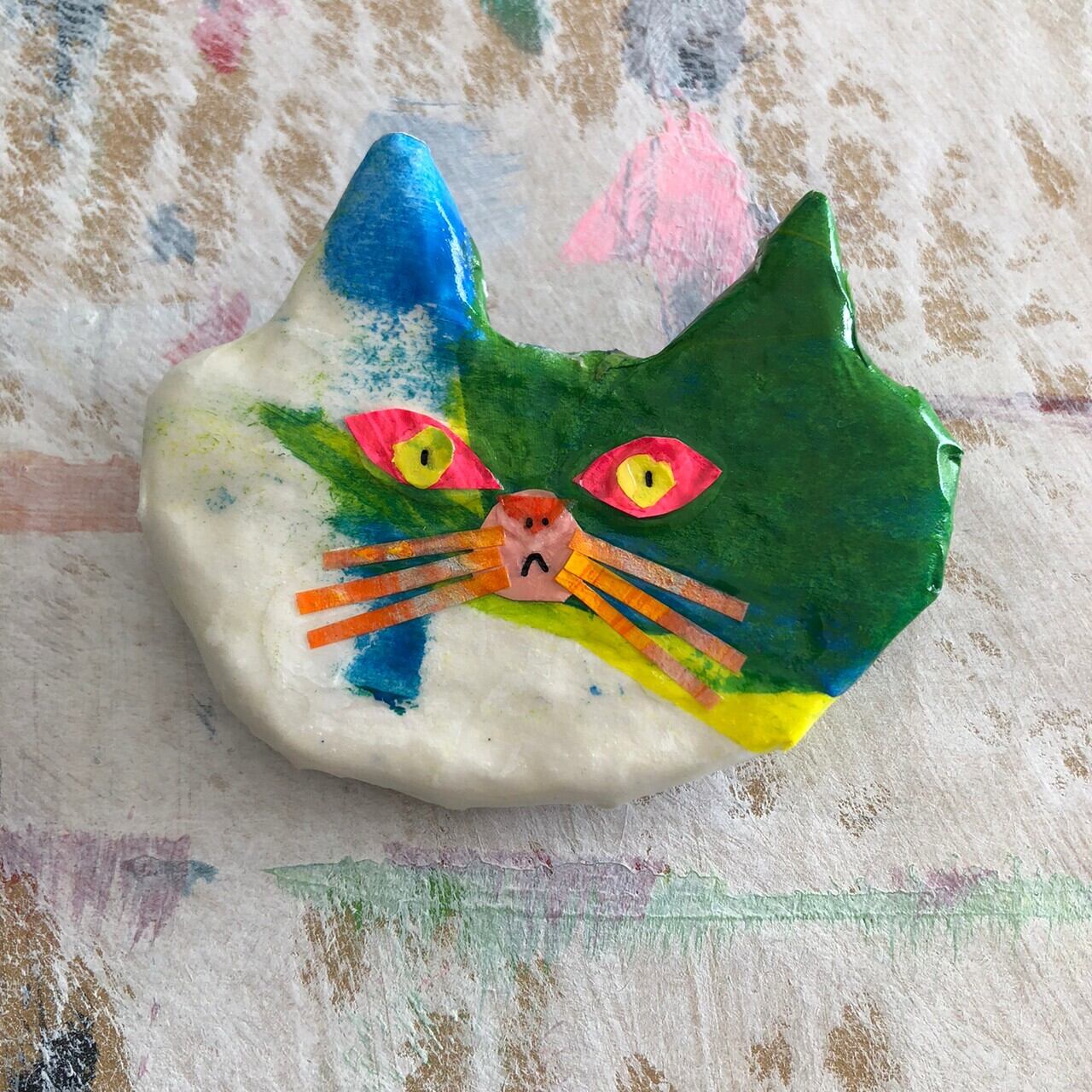 ねこの手作りコラージュブローチです。