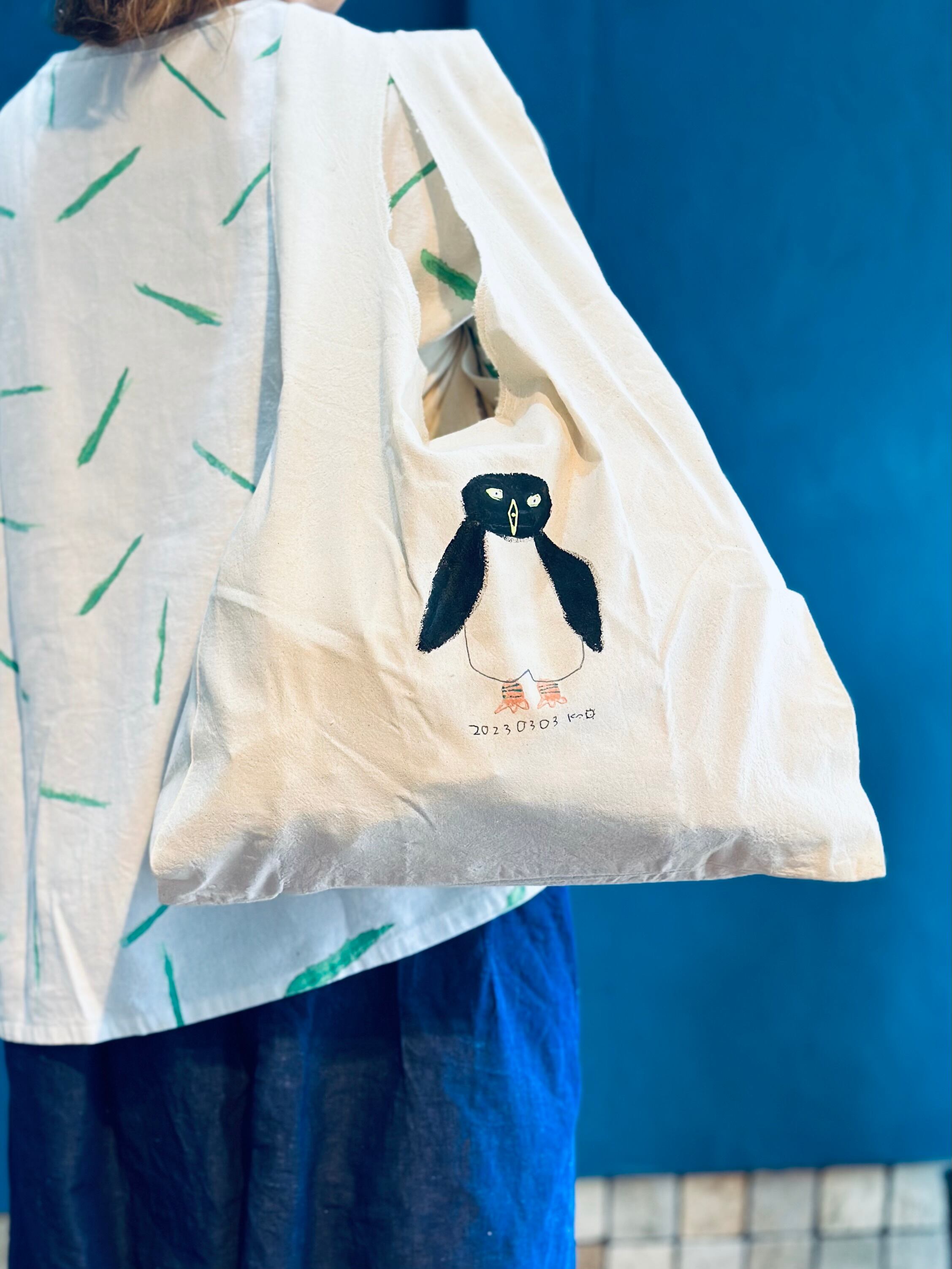 手描きのイラストが可愛いマルシェバッグSETです。巾着とマルシェバッグの2種類がセットになっているので、使い分けも出来ます。大きめのマルシェバッグは肩がけもでき、持ち手を結んで持ってもかわいい形です。くるくるまるめてスナップボタンでとめれば巾着に収納もできます。旅行やお買い物、アウトドアなど、様々な場面で活躍してくれます。