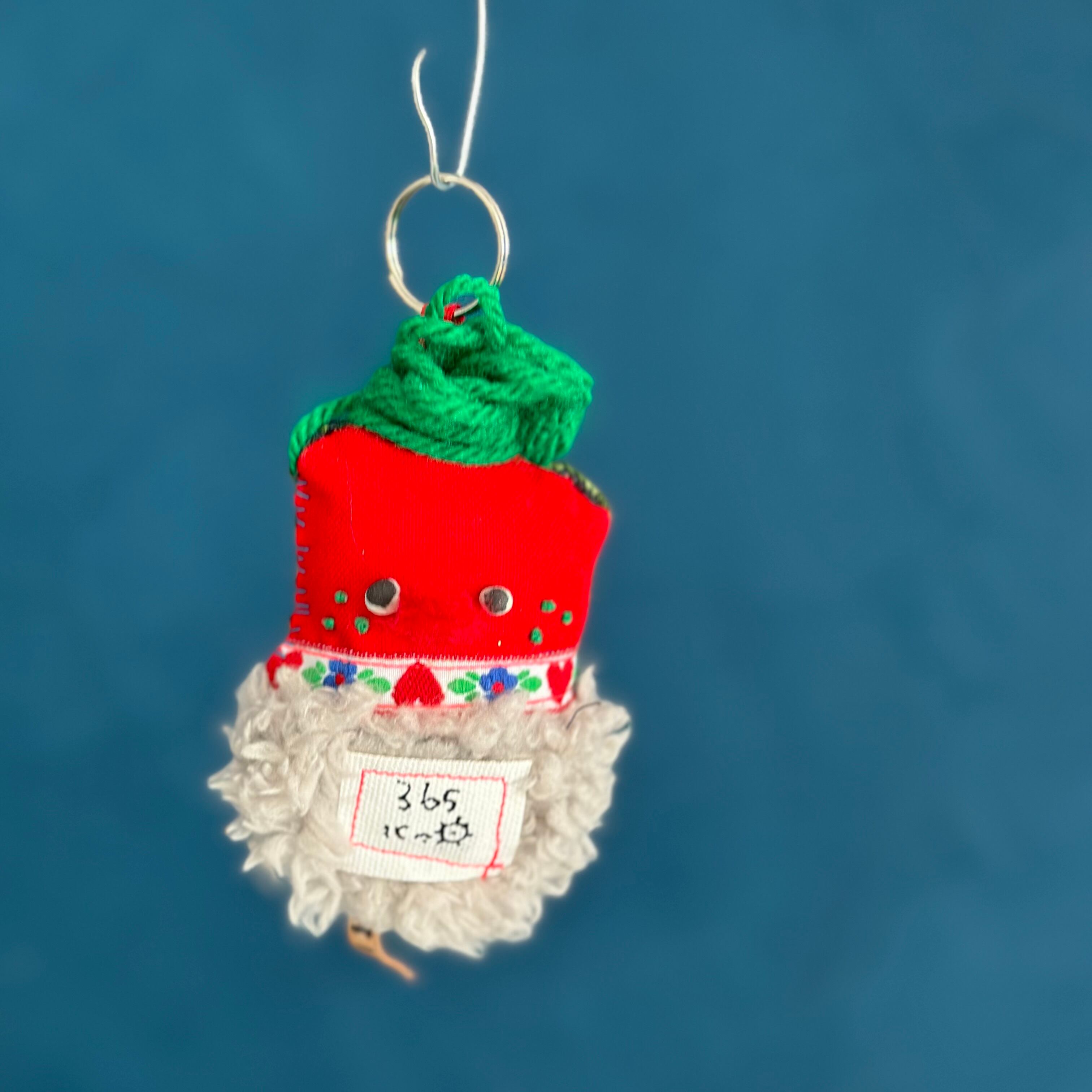 ぬいぐるみ制作が終わると、〆作品として作るハギレンジャー。作品制作時に生まれたハギレや端材と手織りされたさをり織のハギレ、古着を再利用した、小さなマスコット。目玉に使っているのは陶芸家さんに作っていただいた陶ビーズで愛嬌あるマスコットです。頭のてっぺんに二重リングをつけてあるので、キーホルダーやバッグチャームなどにも使用できます。制作した順番にシリアルNo.をつけています。